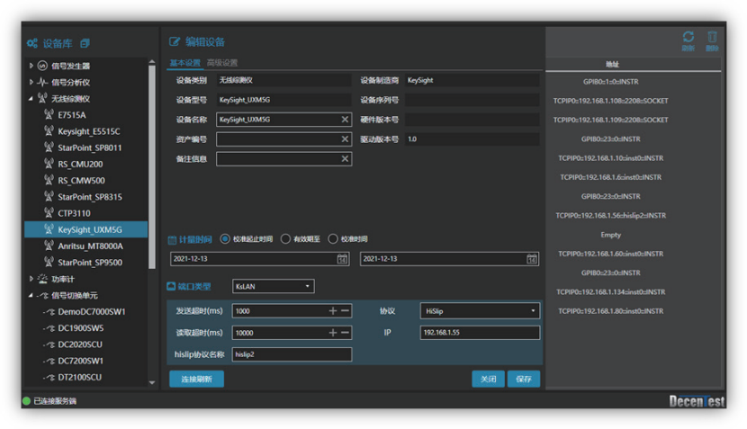 k.既可统一指定测试仪表,又可精确到最小测试单元,对其单独指定测试仪表。达到灵活组建测试系统、合理利用设备资源的目的;