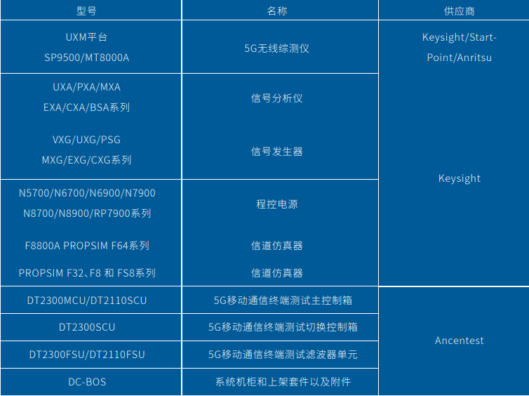 AC2300S 5GNR FR1法规认证测试系统适用于5GNR终端的SRRC/CE/FCC/IC/MIC认证的自动化测试系统。系统完全覆盖3GPP标准(38.521-1/38.521-3)、EN标准(301908-25)、FCC标准(CFR47Part2/22/24/27等)、IC标准、MIC标准的测试需求。测试系统支持:SA/NSA/CA/SUL/UL-MIMO等5GNR模式的测试。支持3GPPRel-17的RedCap(Reduced Capability)测试。测试系统集成主流商业的5GNR综测仪、频谱仪、信号源,如E7515B、SP9500、MT8000A、PSA系列频谱仪、MXG系列信号源等。结合自研的AC2300MCU/SCU/FSU系列控制箱,自动完成5GNR的法规认证测试。