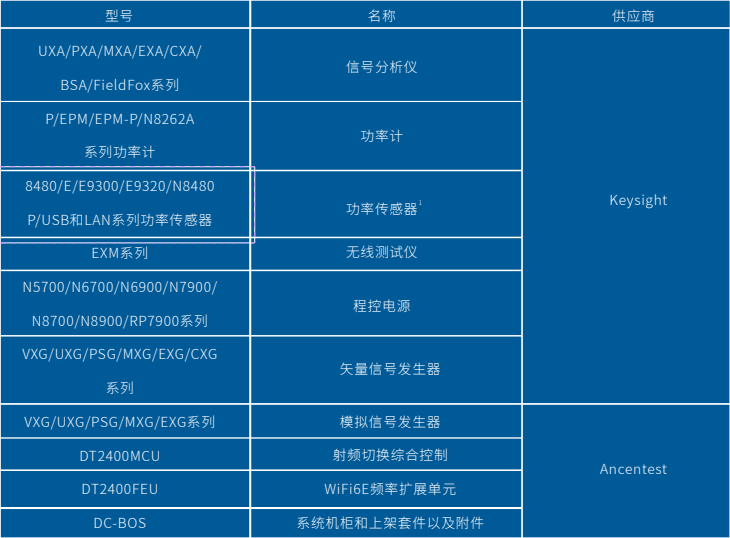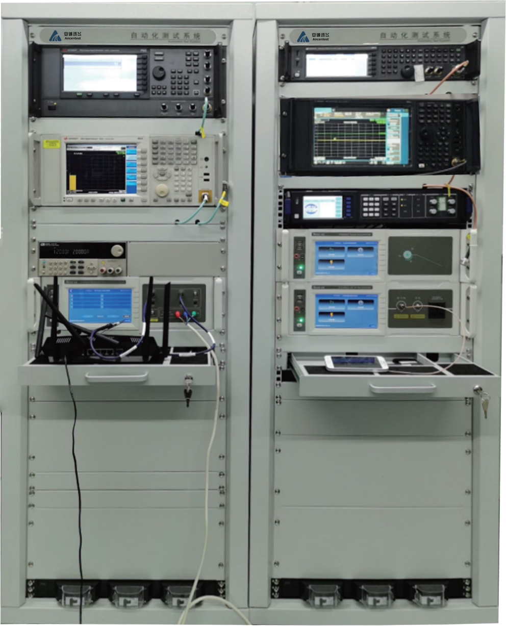 本系统主要基于是德科技测量仪表,配合射频信号切换和调理单元以及外围测试附件搭建而成,通过GPIB、LAN等通用控制接口实现系统仪表的自动化控制,系统软件基于第三代DC-TestBase专用测试平台集成,具备灵活配置测试参数、测试规划和测试任务。系统支持对工作在2.4GHz、5GHz、6GHz频段的无线电设备的干扰规避自动化测试,同时出具数据报表。系统同时设计了待测设备进行干扰规避测试时所需的关联设备接口,通过专用的测试路径排除关联设备信号对测试系统本身的影响。