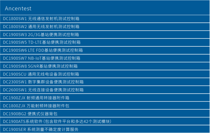 系统支持模拟通信设备、通用数字调制设备、2G/3G/4G/NB-loT/eMTC/5G等公众通信网设备、雷达设备、广电设备、中继设备、新兴无线接入设备、卫星地球站射频单元、微波接力站等全自动化指标测试。
