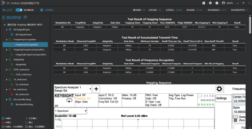 本系统主要基于是德科技测量仪表,配合射频信号切换和调理单元以及外围测试附件搭建而成,通过GPIB、LAN、USB等通用控制接口实现系统仪表的自动化控制。系统软件基于第三代DC-Test-Base专用测试平台开发,具备灵活配置测试参数、制定测试规划和执行测试任务的能力。