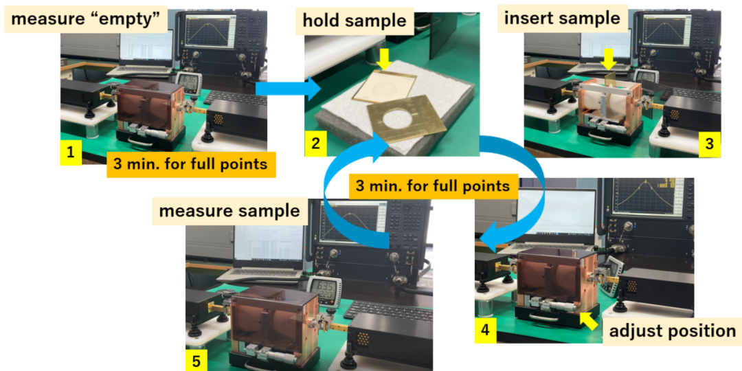 图2:分裂圆柱谐振器的装置与测量步骤