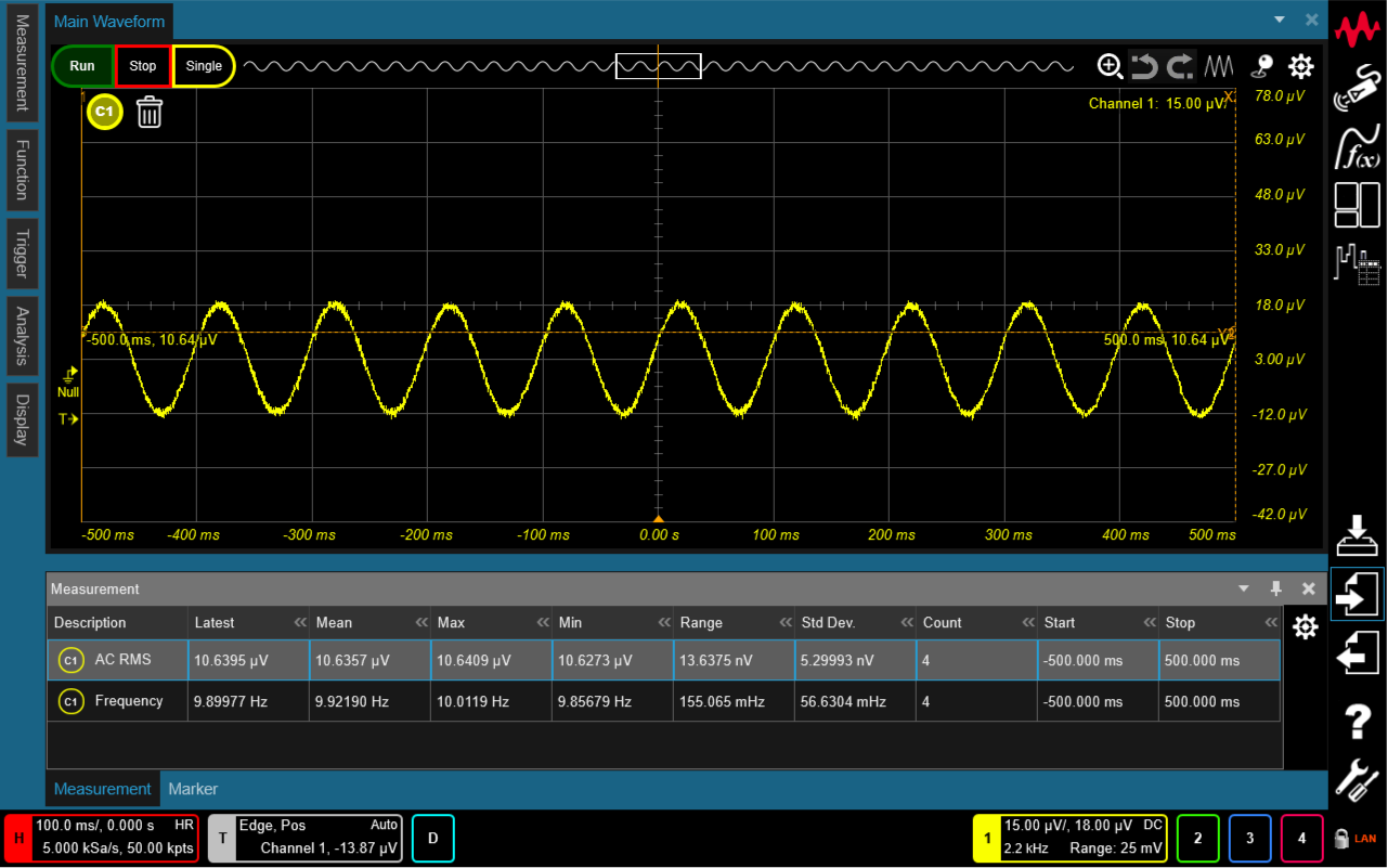 AP 信号源输出 uV 级别刺激电压信号,其信号幅度(RMS)为 10.639uV
