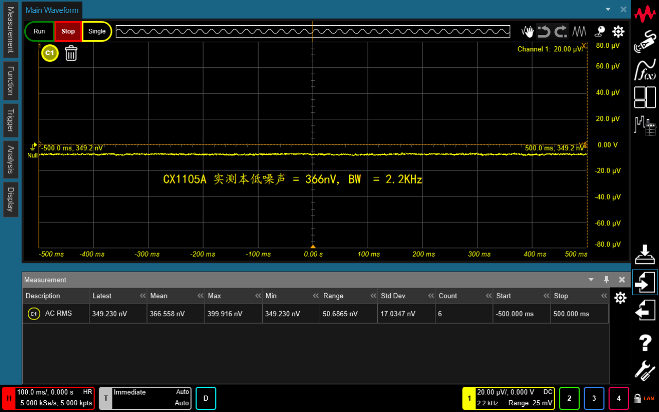 CX3300+CX1105A 本底噪声低至 366nV(BW=2.2KHz)