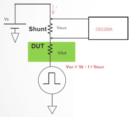 在 GPU/MCU 瞬时电流测试中,采用采样电阻(5mΩ)作为电流取样电阻,CX1104A/CX1105A 展现出高分辨率和低噪声优势,可同时测量瞬间大电流与小信号。