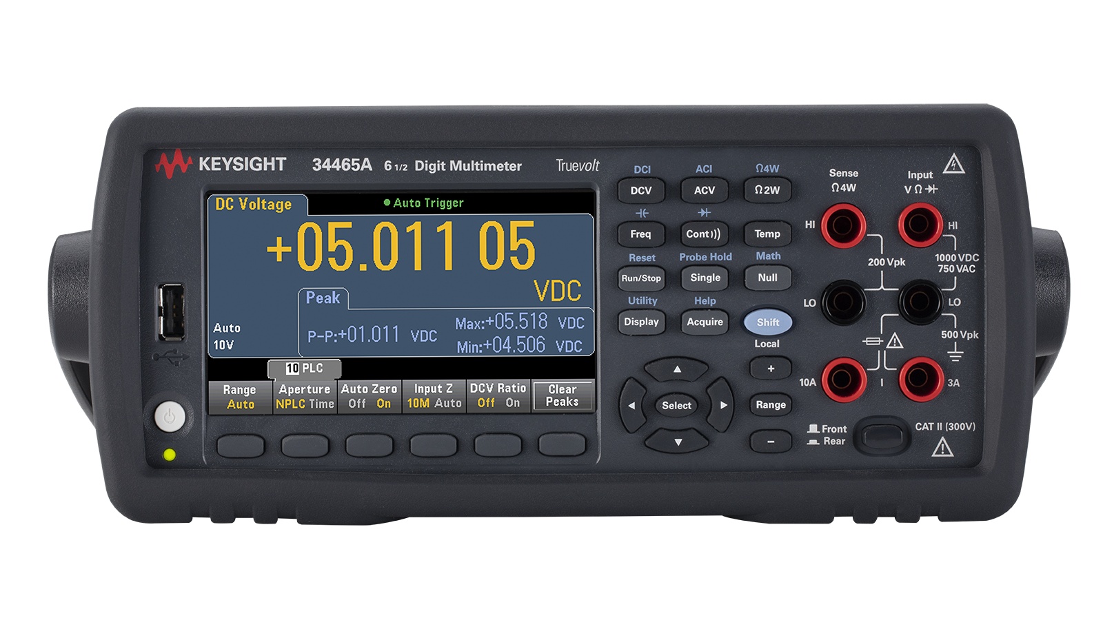 请注意,Keysight Truevolt 系列数字万用表使用相同的技术测量真有效值电压和真有效值电流。 有效交流电压带宽为 300 kHz,而有效交流电流带宽为 10 kHz。