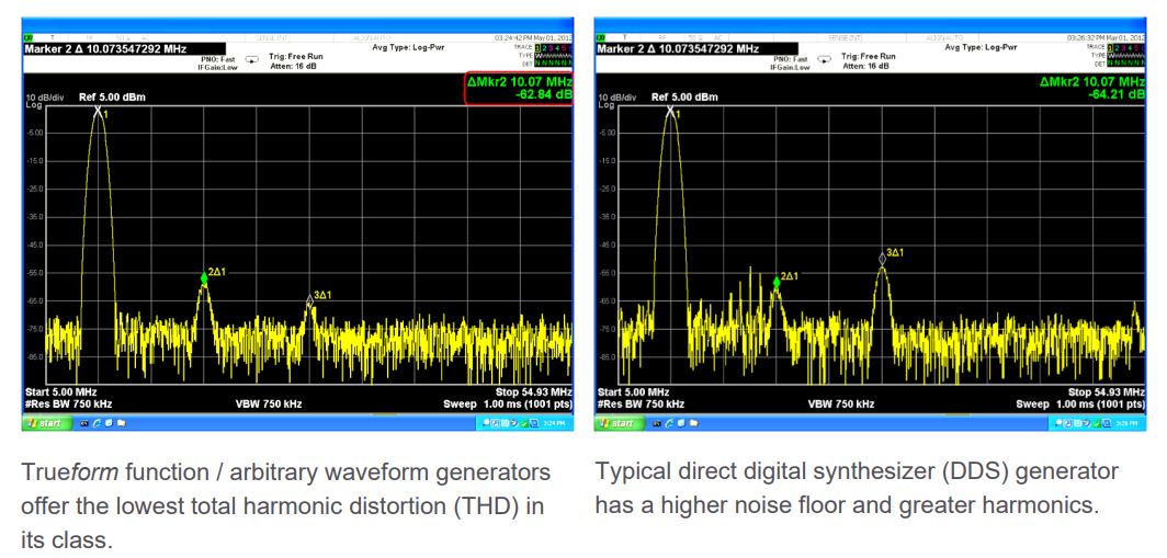 超低的谐波失真 - Trueform 波形发生器的总谐波失真仅为 0.03%,保真度是其他是德科技发生器的 5 倍。纯净的无杂散信号不会带来噪声或伪影。在测量过程中,看到的是纯粹的设计特征,而不是波形发生器的特征。