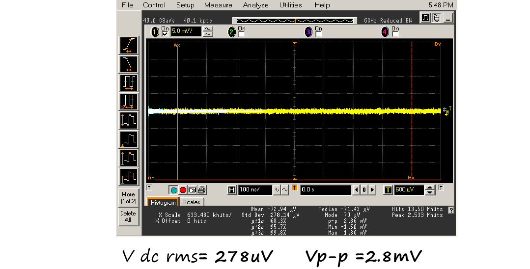 随着电流电平的下降,示波器本身具有的噪声— 垂直噪声,将变成一个现实问题。当您测量低电平信号时,测量系统的噪声可能会导致实际信号测量的精度下降。由于示波器是一种宽带测量仪器,所以示波器的带宽越宽,垂直噪声就越高。在进行低电平测量时,需要注意示波器的存储深度可能会影响本底噪声。在带宽和其他条件都相同的情况下,存储越深,噪声越大。