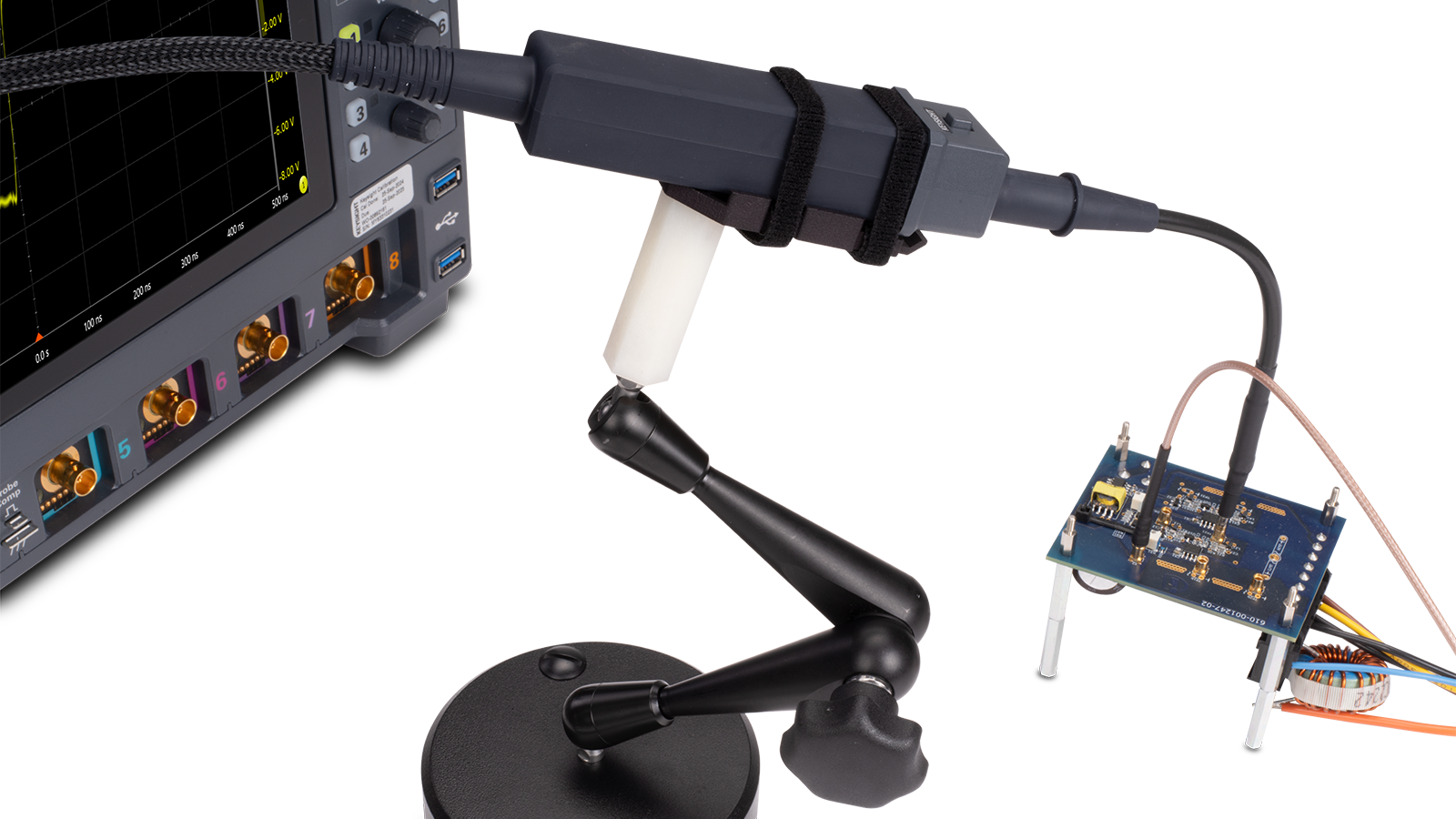 第一种是直接用电流探头。是德科技提供多种电流探头,既可以测试直流,也可以测试交流。如果要测量的精度比较高,可以在电流探头的孔中多放几圈流过电流的电线。就示波器探头的分类来说,可以按照探头是否需要外供电,分为无源探头和有源探头两大类。