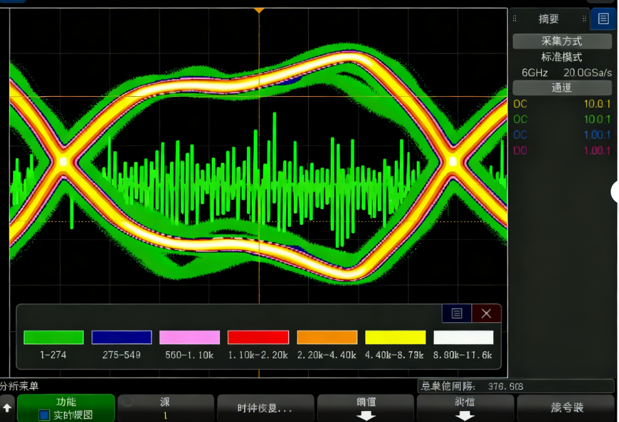采样示波器可以通过在特定周期内的多个点进行采样来创建眼图,从而捕获所有符号转换的组合。