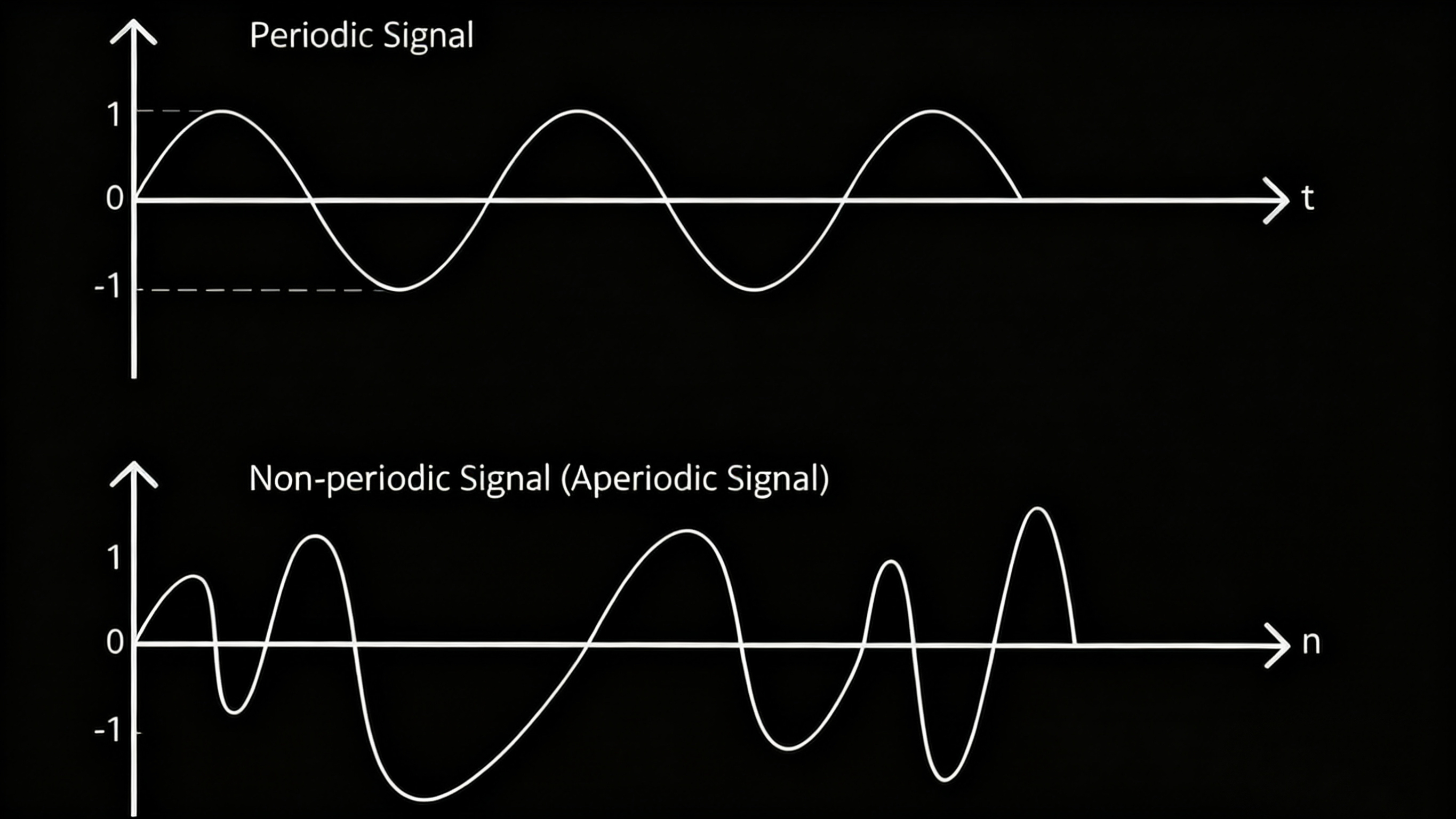 通信的本质在于传递信息。然而,周期信号由于其可预测性,其信息传递的可能性有限。在接收到几个周期并确定其模式后,我们知道接下来的周期将完全相同。信号在开始时可能传达重要信息,例如火警警报,一旦听到声音就会立即采取行动。但是,如果信号的幅度、频率、相位或任何其他方面都保持不变,则几乎无法向接收者传递任何进一步的信息。因此,在实际通信中,完全周期性信号是例外。承载真实信息(例如语音、音乐或视频)的信号不会无限重复。